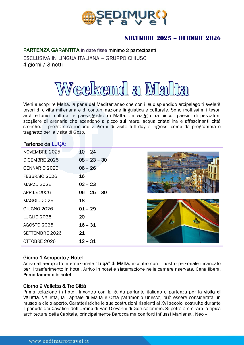 Weekend a Malta in date fisse da Luqa in italiano 4 giorni