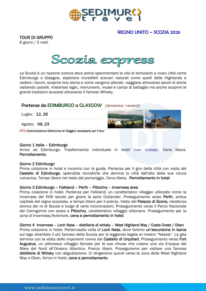 Scozia express da Edimburgo a Glasgow 6 giorni