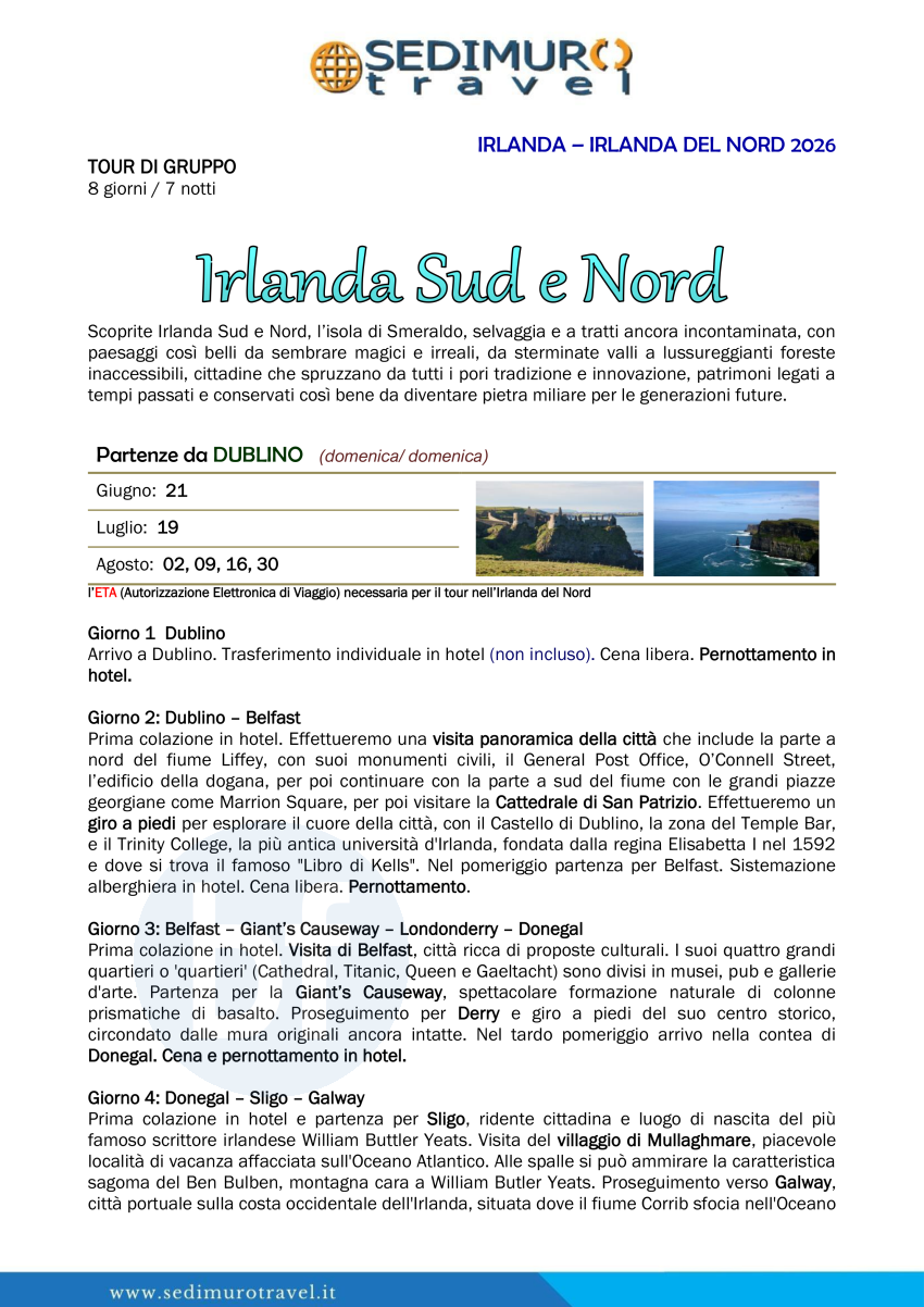 Irlanda Sud e Nord da Dublino 8 giorni