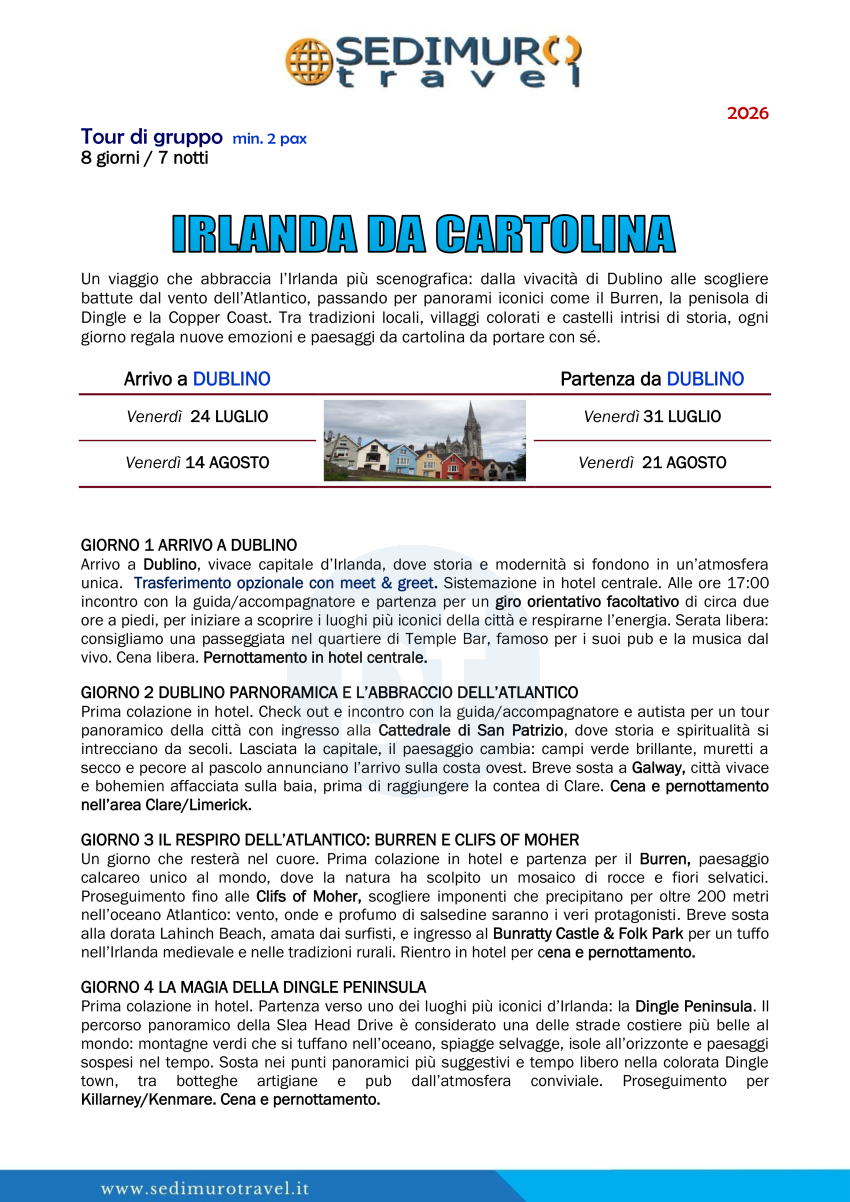 Irlanda da cartolina da Dublino di venerdì 8 giorni