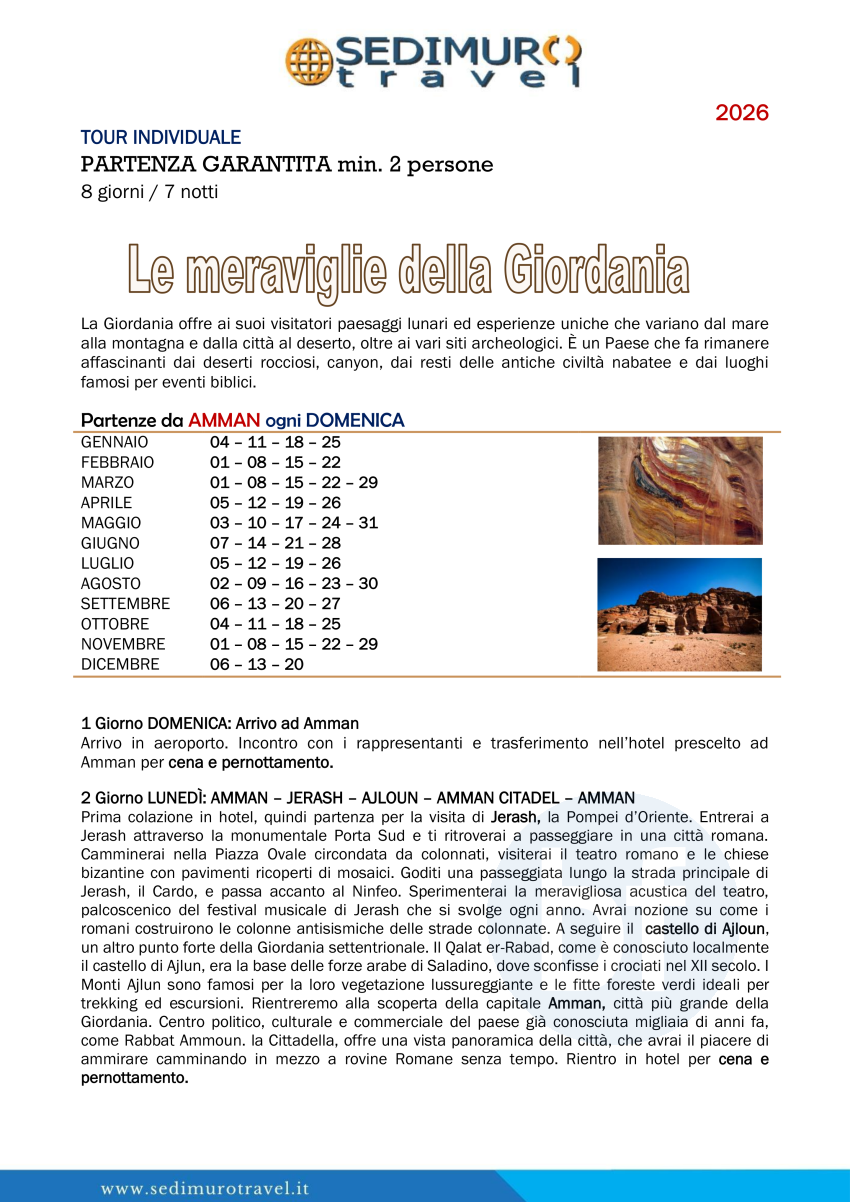 Le meraviglie della Giordania ogni domenica da Amman 8 giorni
